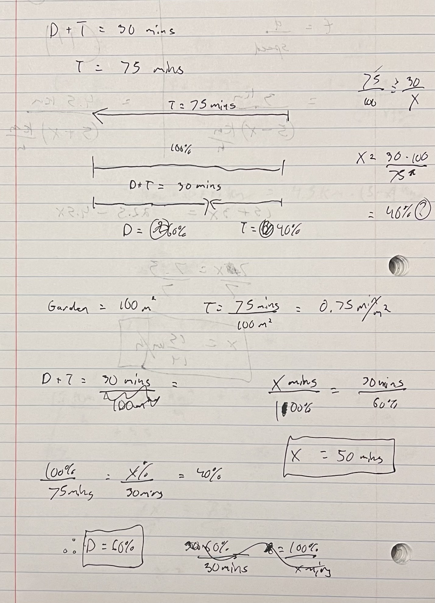I got this question correct but, again, not in the “proper” way. You can see my rough notes in the first page above. I started by thinking to myself—if it was a 50/50 split between the two toothpastes, then it would work out to 0.7% concentration since (1.1 + 0.3)/2 = 0.7. As you can see in the first page of my notes above, I then played around with different proportions of each toothpaste to find a concentration closer and closer to the correct amounts and eventually landed on 62.5% and 37.5%. I then did some cross multiplication to find the amount of ml needed of the weaker concentration toothpaste. So, not the way KA did it but I solved it, nonetheless. (FYI the second page of my notes was the way I was “supposed” to do it. 🙃)