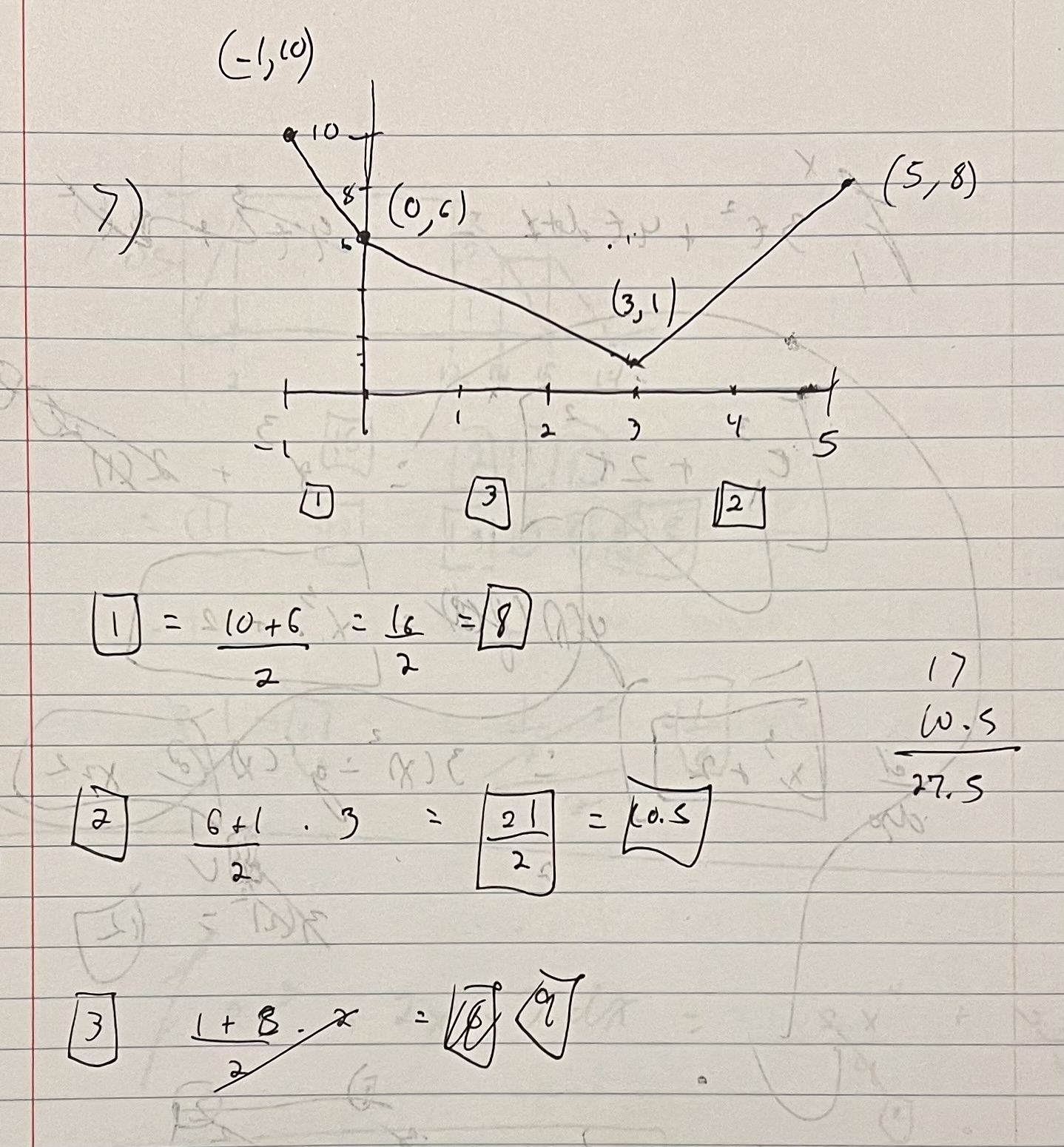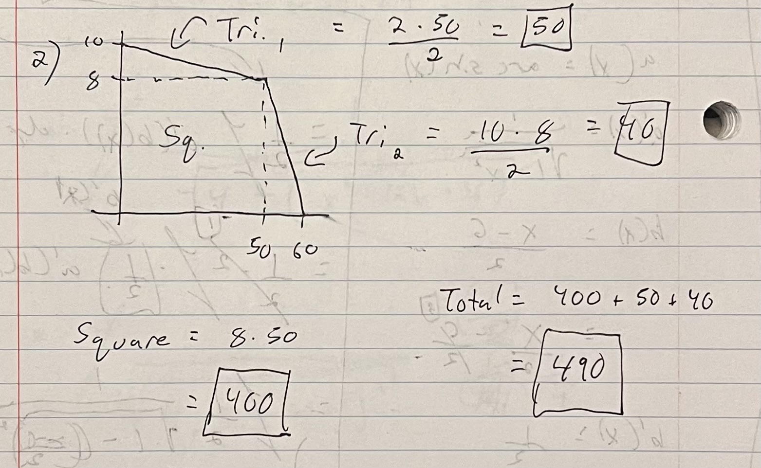 After working through that tricky trig identity problem above, this question was a welcomed relief. I wasn’t sure if I was supposed to figure out the linear functions that created the shape and throw them into and integral. I could have done that but I also knew that I could just solve it by breaking the area into shapes (a square and two triangles) and then find their individual areas, so that’s what I did. As you can see from KA’s answer, they essentially did the same thing but split up the area into a trapezoid and a triangle. Same difference.