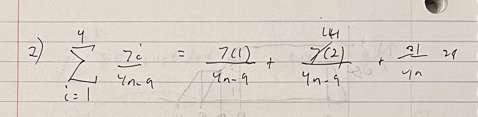 I got this question correct and was happy that I remembered how sigma notation worked, but I didn’t really know what I was doing when I answered this question. As you can see from my notes, I just started writing out the expanded equation inputting 1–4 for each value in the index, but I quickly realized the equation looked just like the third option of the solutions. Initially I thought I was going to need to do some algebra at some point or something, but that turned not to be the case. 🤷🏻♂️