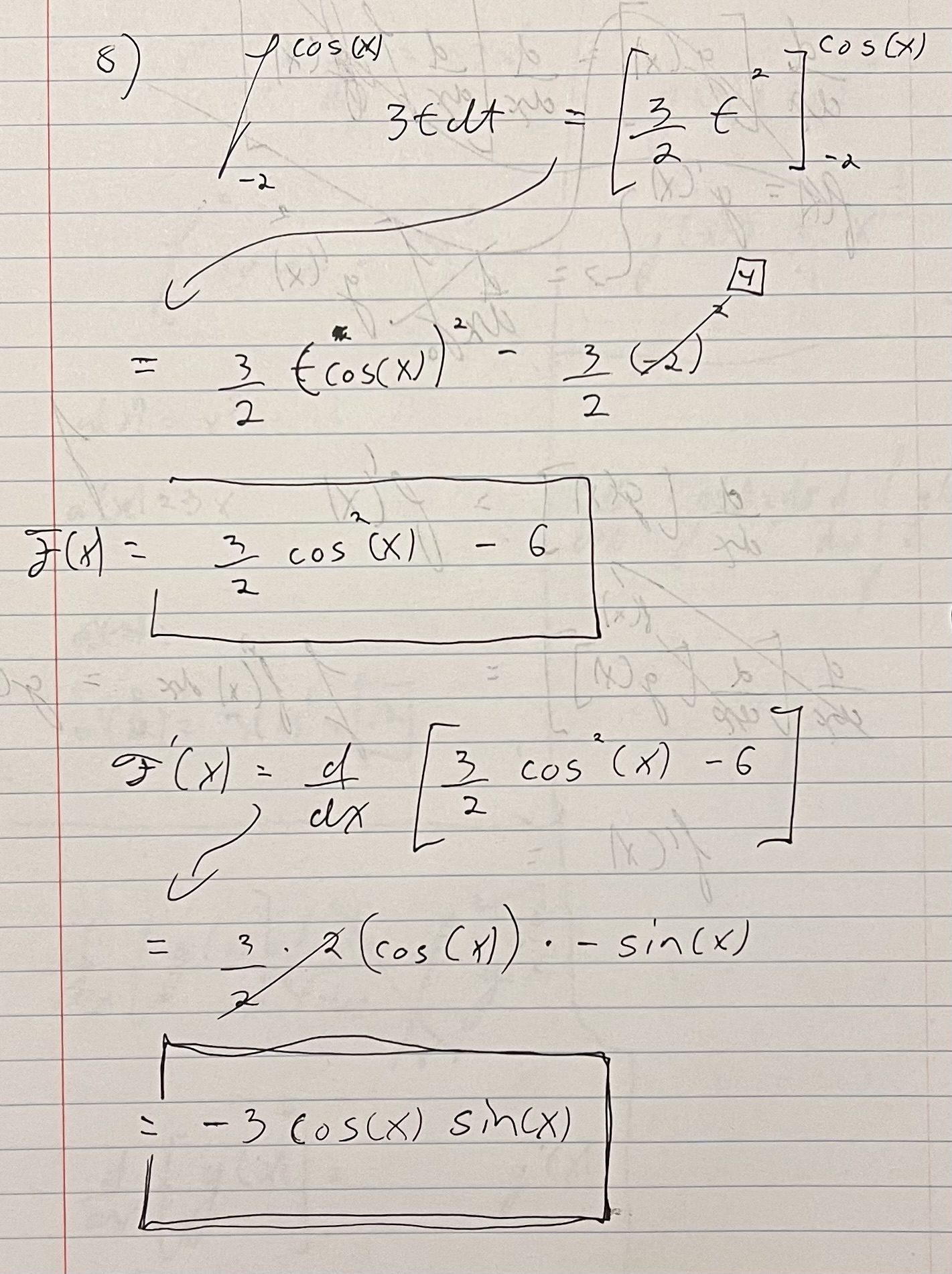 You can see from my notes that I clearly didn’t solve this question the same way KA did. After looking at KA’s answer, I watched the video it recommended to understand why their method worked, which I did, but it didn’t help me understand. 😕 I spent almost an hour reviewing the Fundamental Theorem of Calculus and was able to remember what it is and more-or-less how it works, but it didn’t help me completely understand why KA’s answer works. It was good review but still disappointing that I couldn’t figure it out. 👎🏼