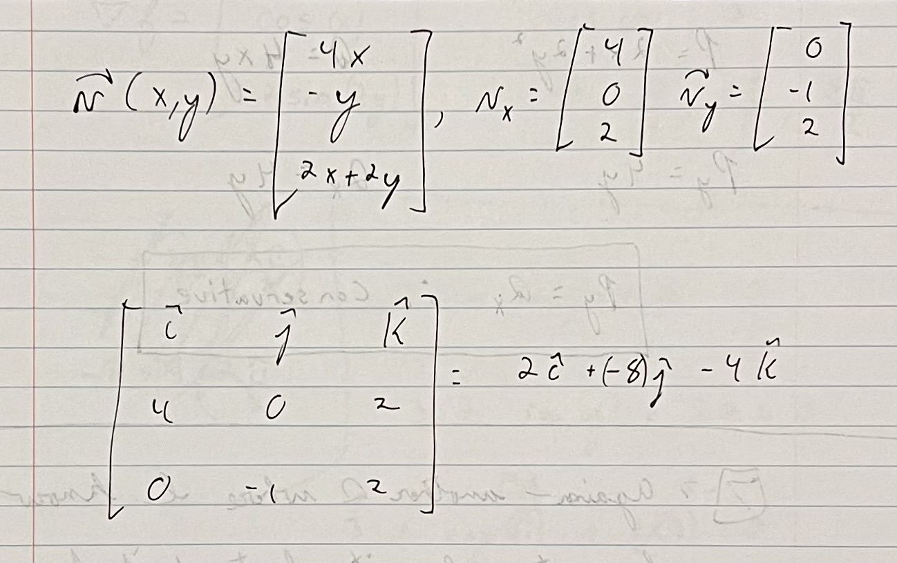I got this correct but was annoyed because I couldn’t (and still can’t) remember why the cross product gives you a vector perpendicular to the surface. 😓